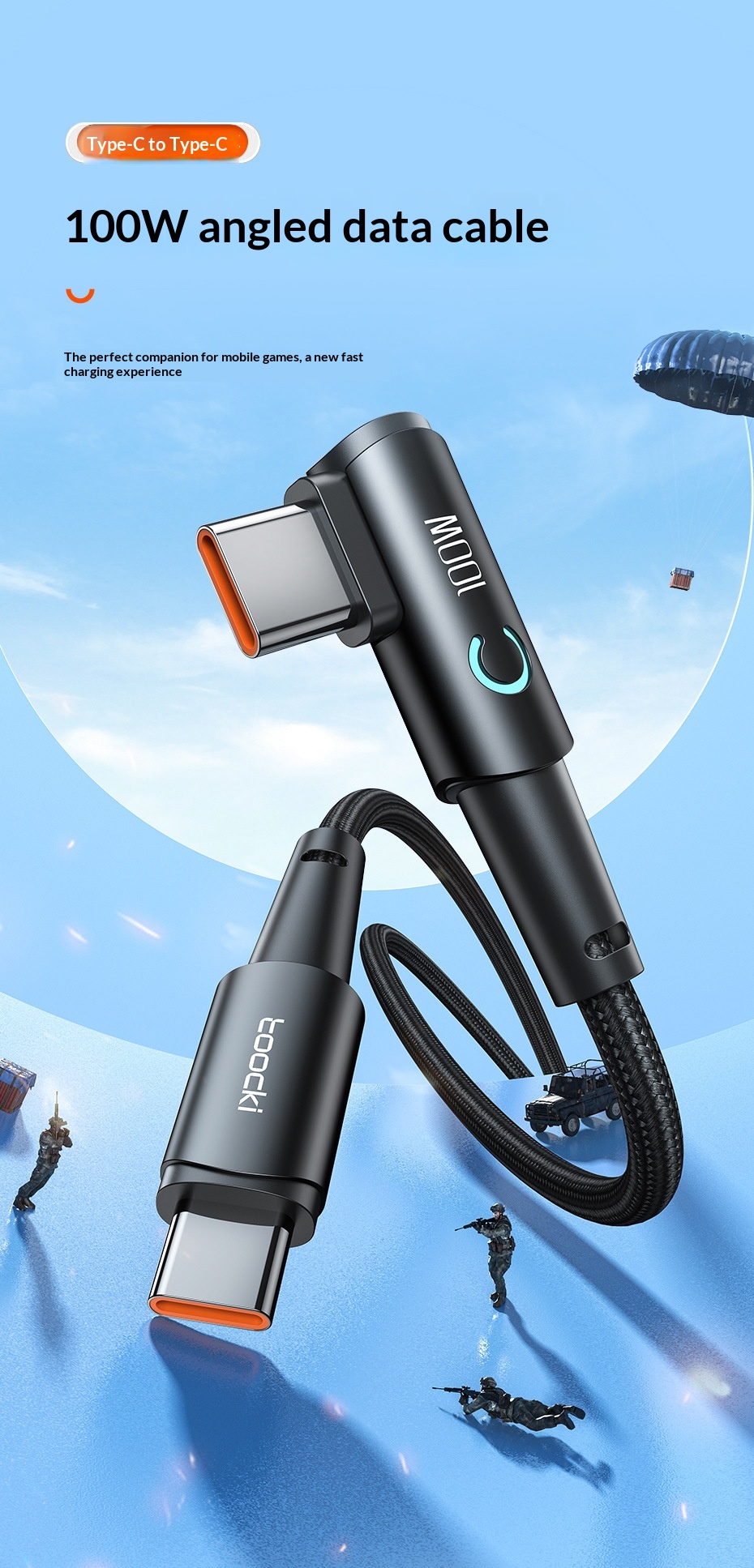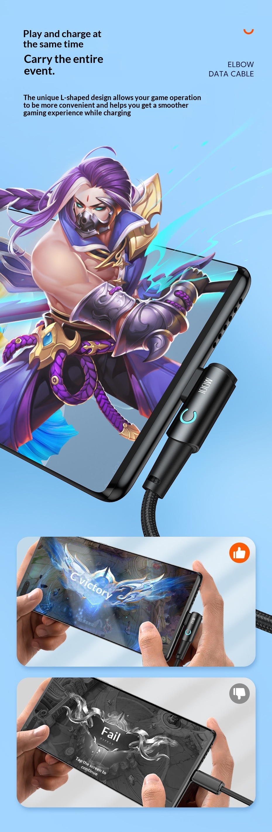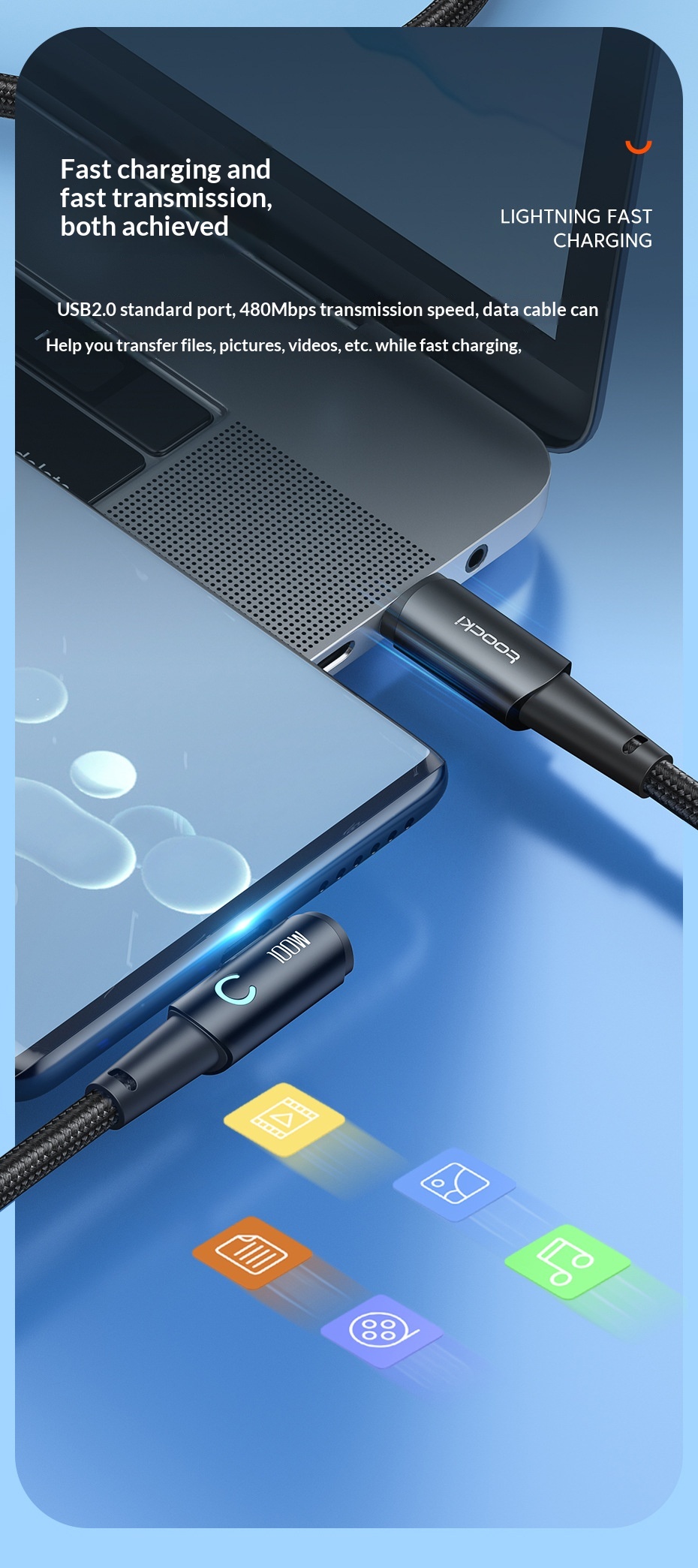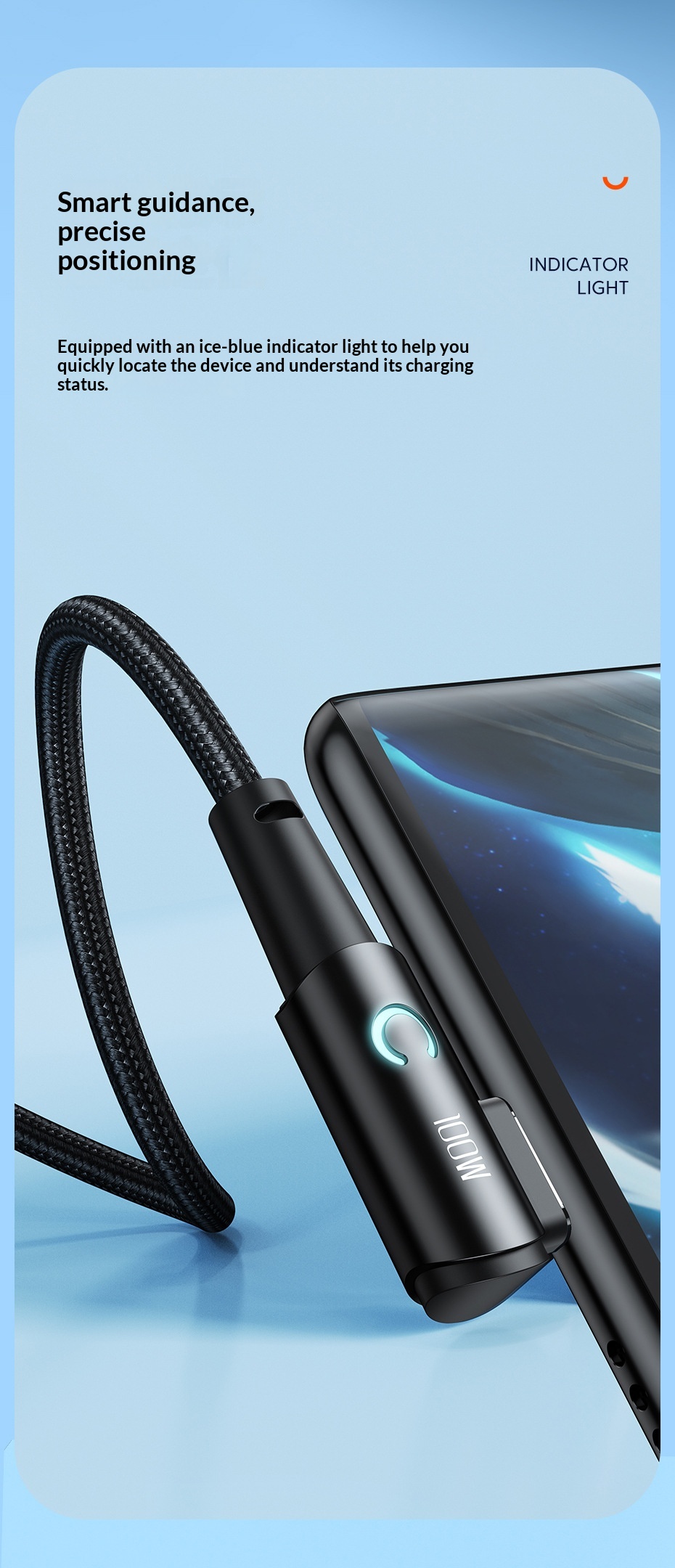 100W Fast-charging Type-C Cable With Illuminated Bend For Data And Charging
