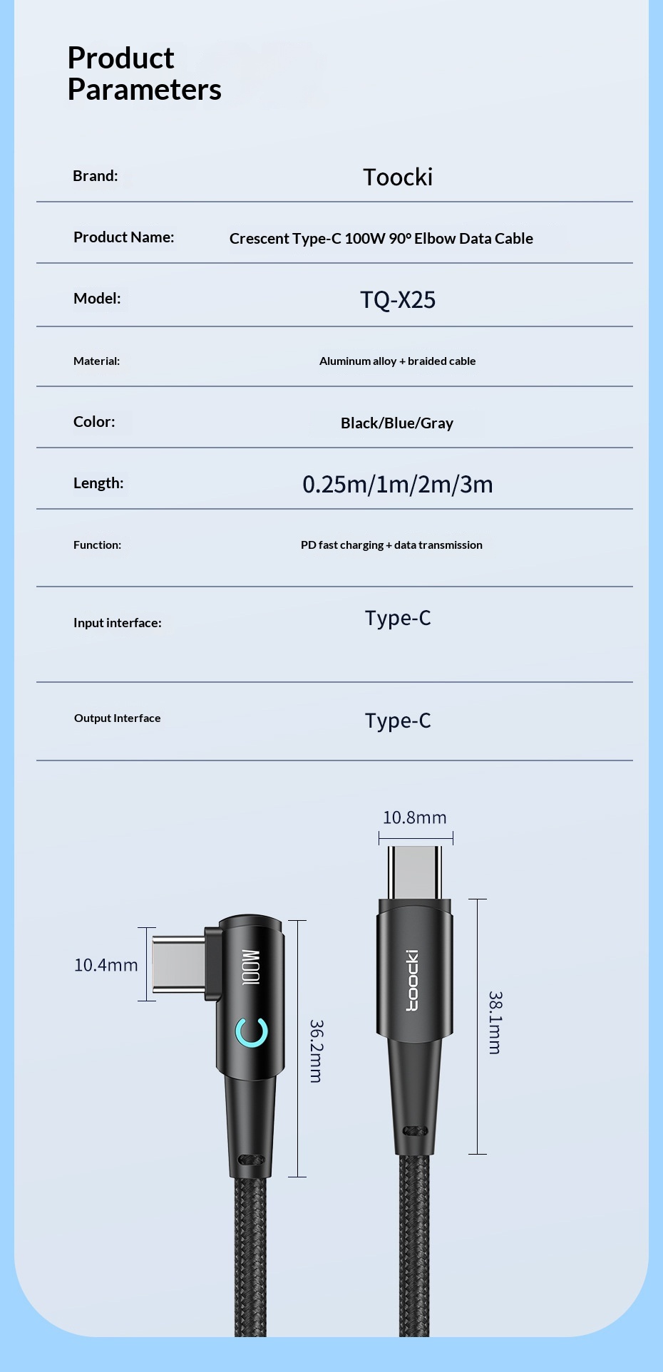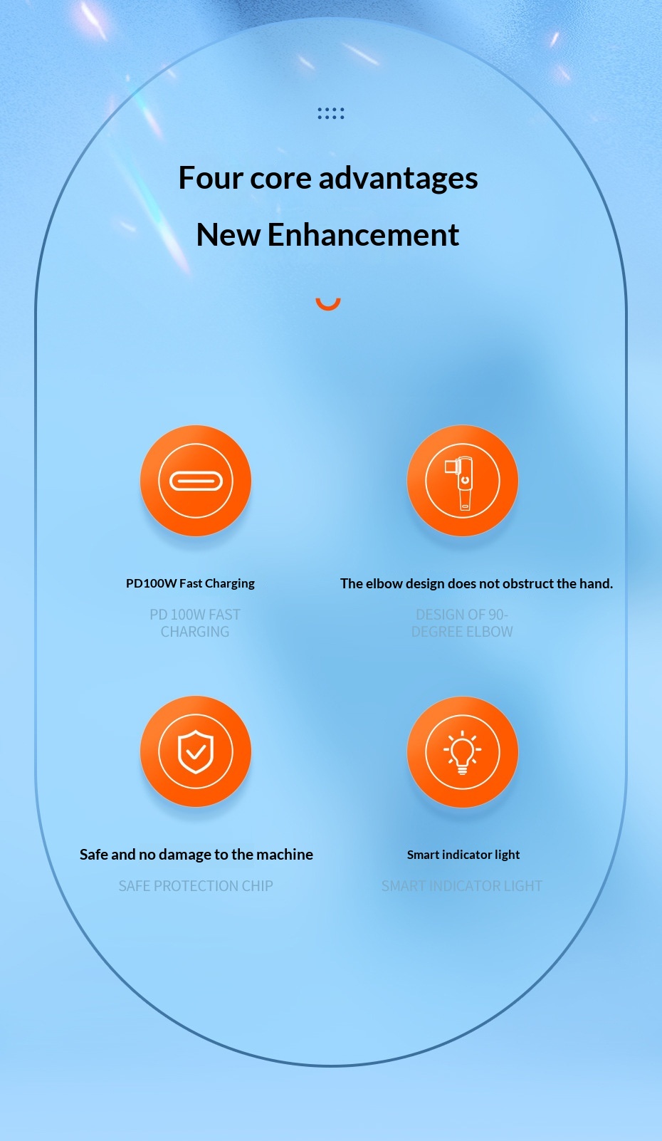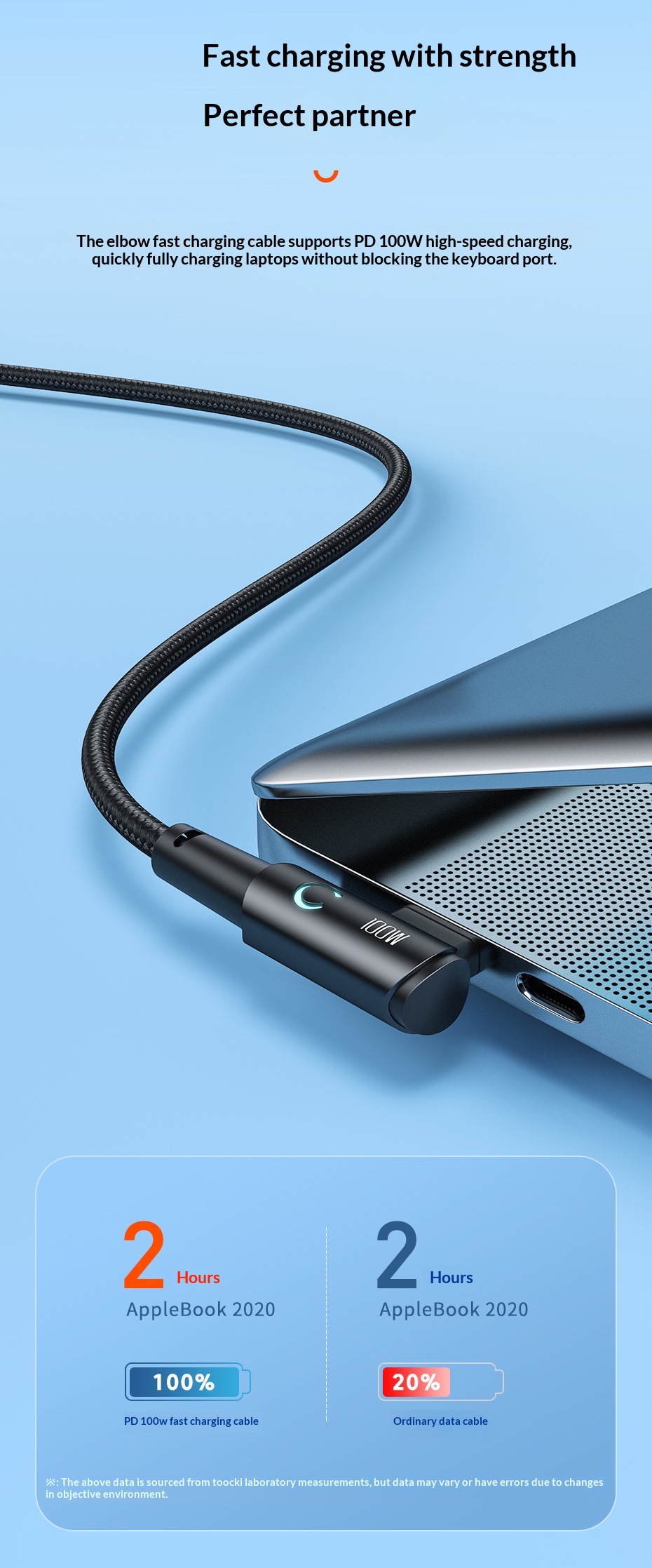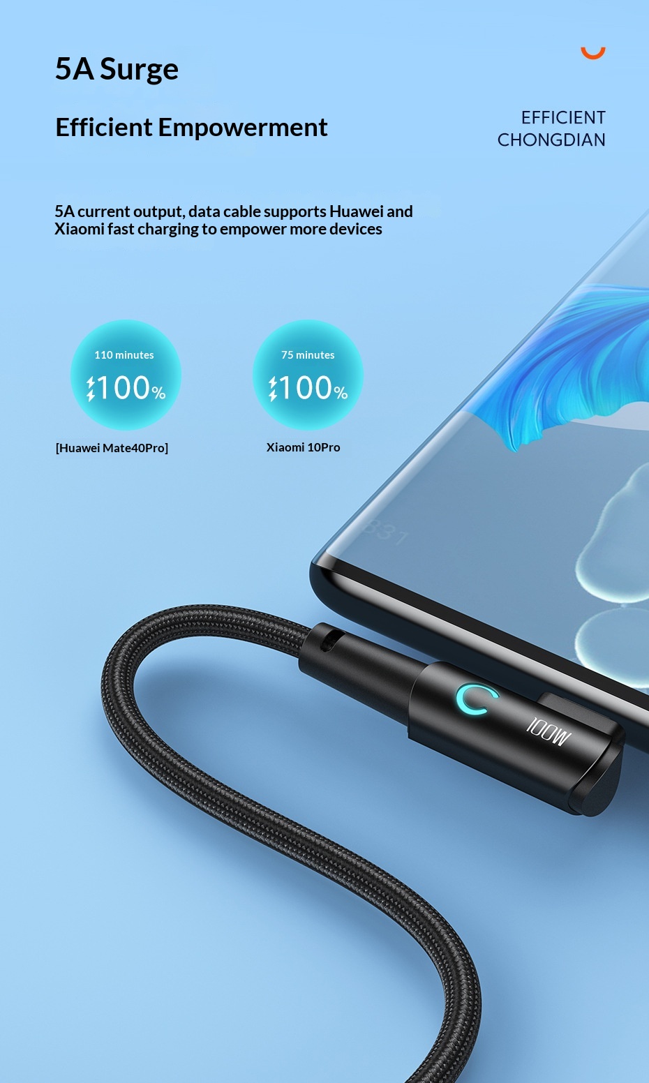 100W Fast-charging Type-C Cable With Illuminated Bend For Data And Charging