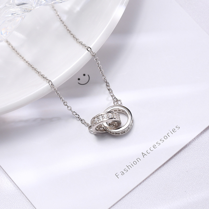 Double-circle Necklace In S925 Sterling Silver Minimalist Design
