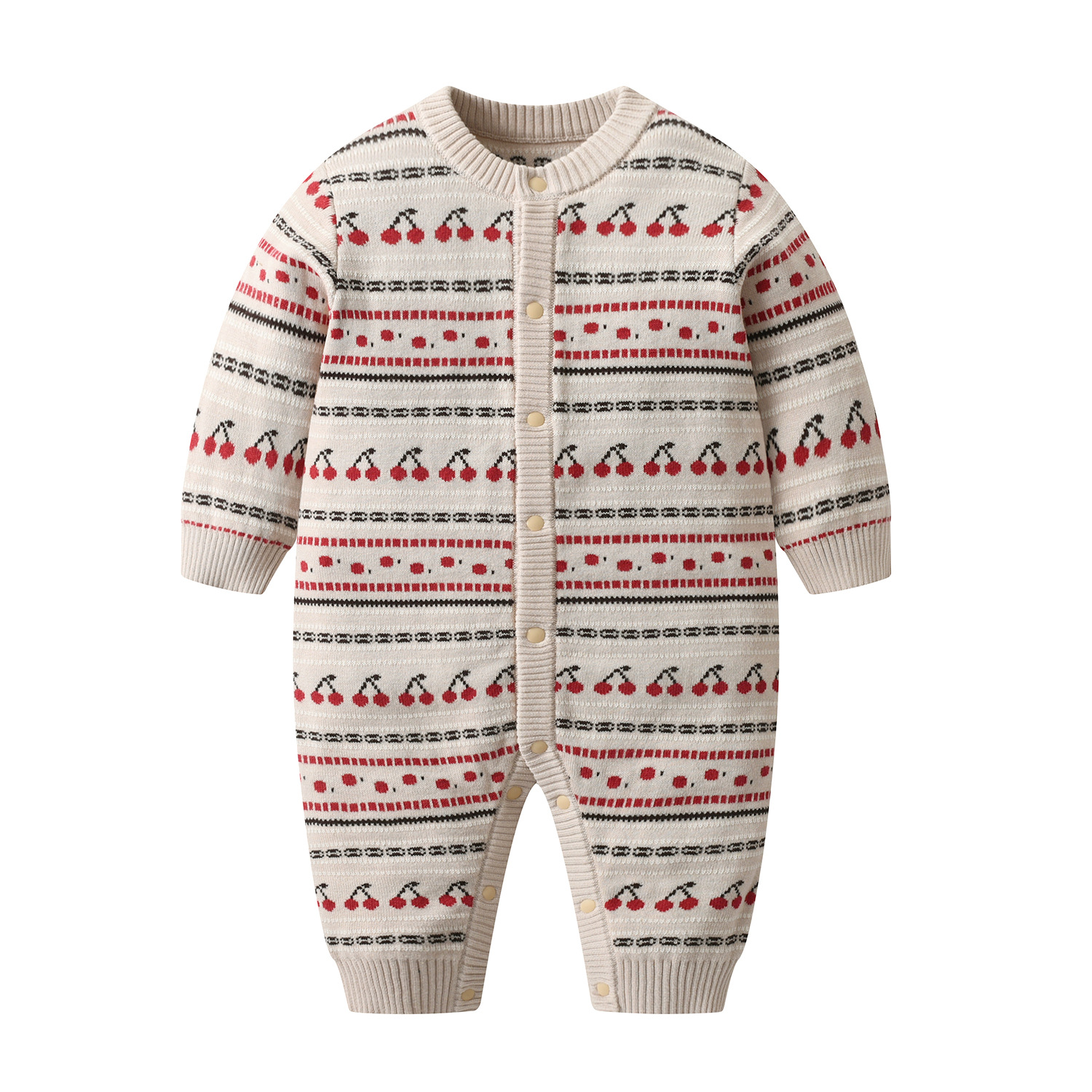 Knitted Jacquard Double-Layer Thickened Baby Romper For FallWinter