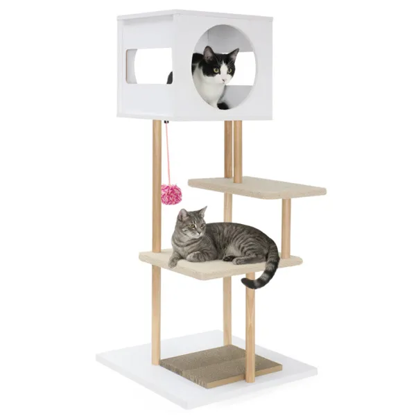 Multi-Level Cat Tree With 2 Scratching Pads, Dual-Door Cat Condo & Anti-Tipping Kit For Indoor Cats