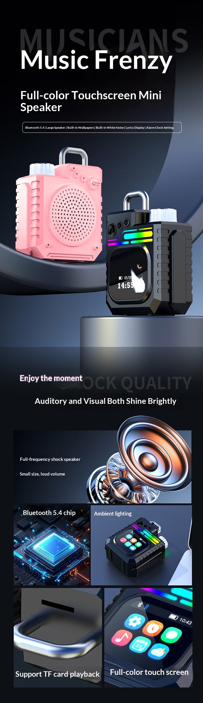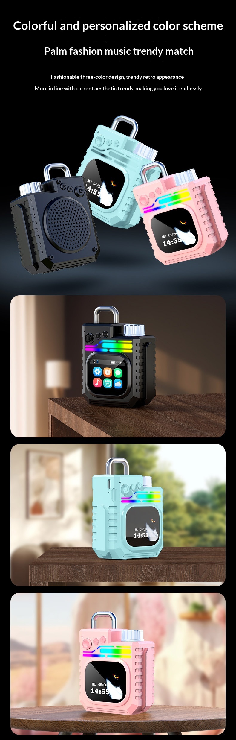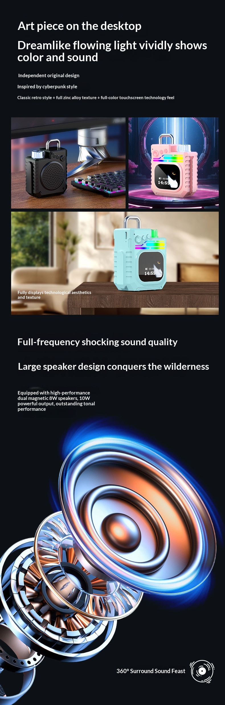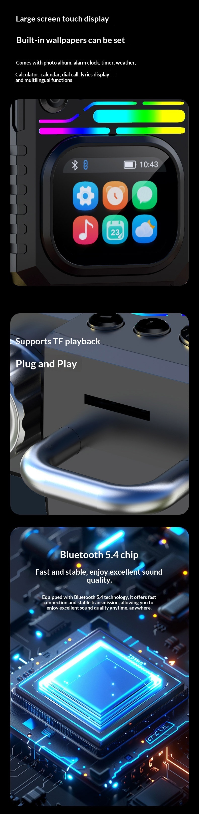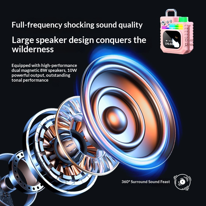 Outdoor Portable Subwoofer Multi-function Color Screen Weather Clock Gift Smart Speaker