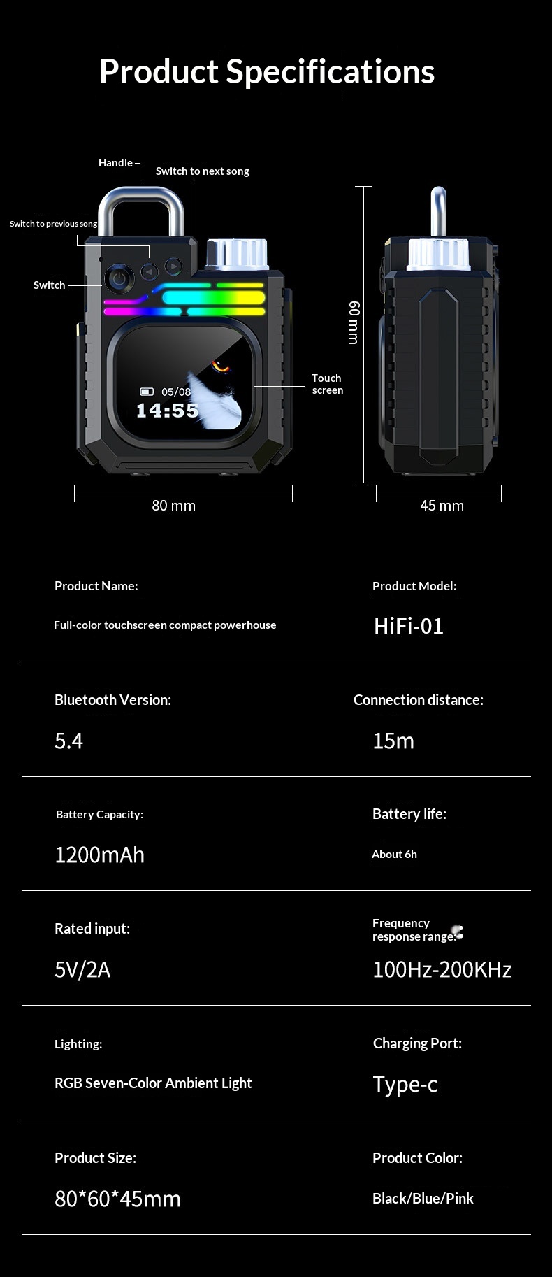 Color: Black, Blue, Pink, White