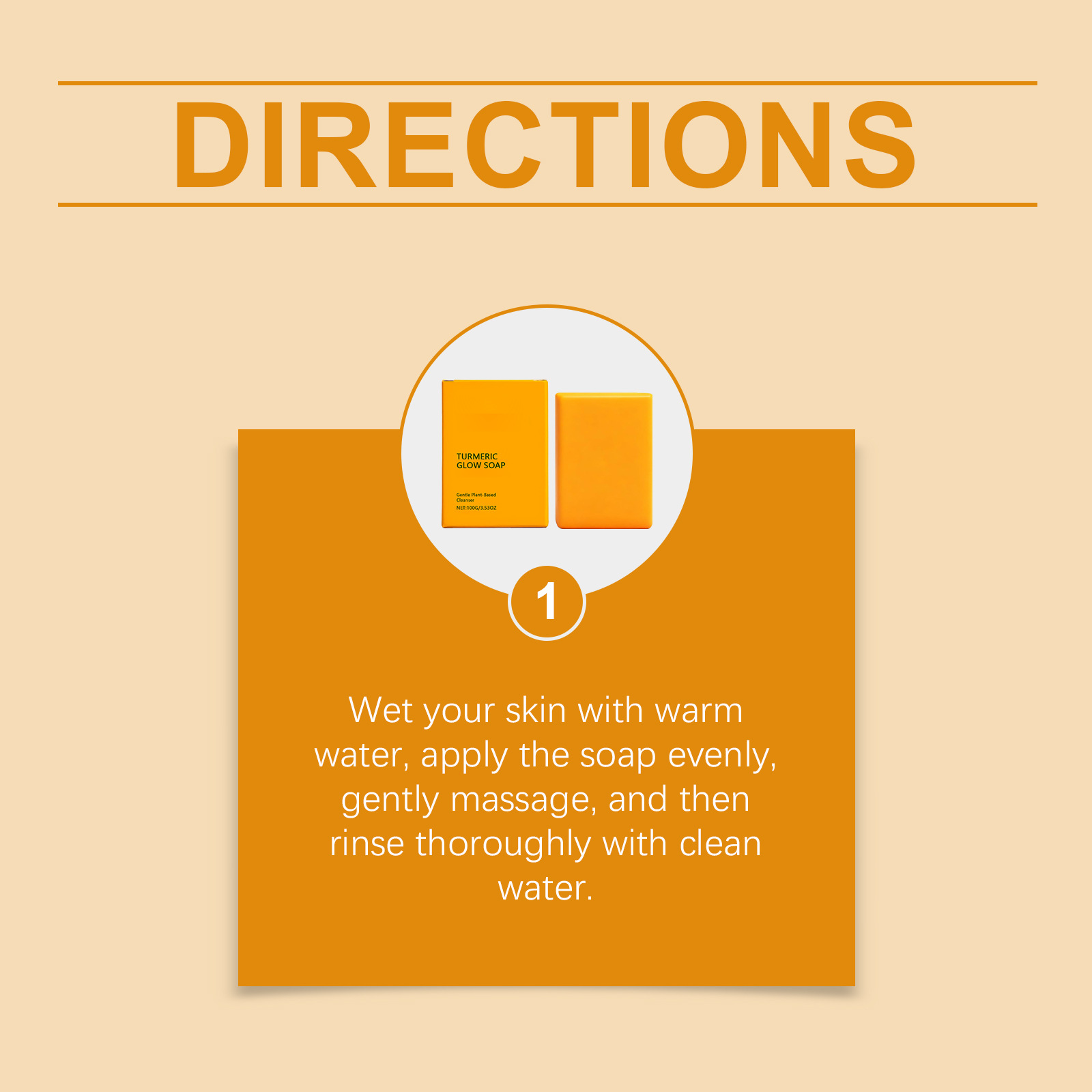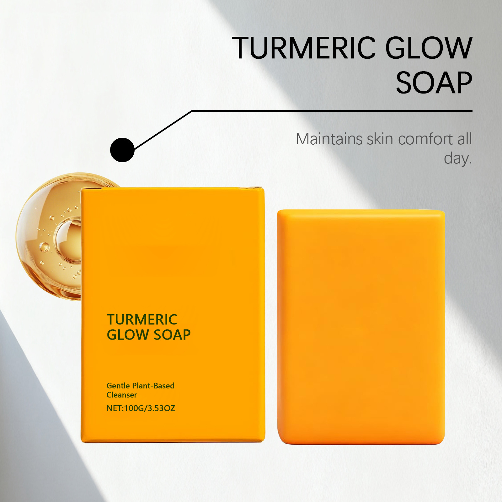 Ingredients: sodium palmitate, glycerol stearate, shea butter, glycerol, 1,2- hexanediol, disodium EDTA, turmeric root oil.
