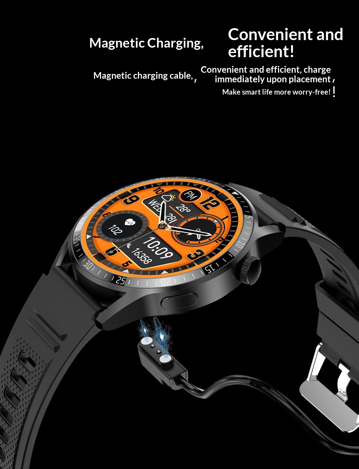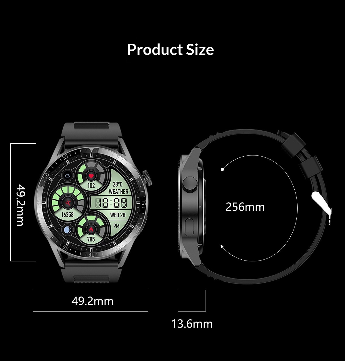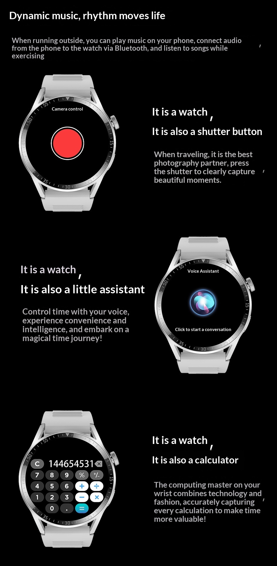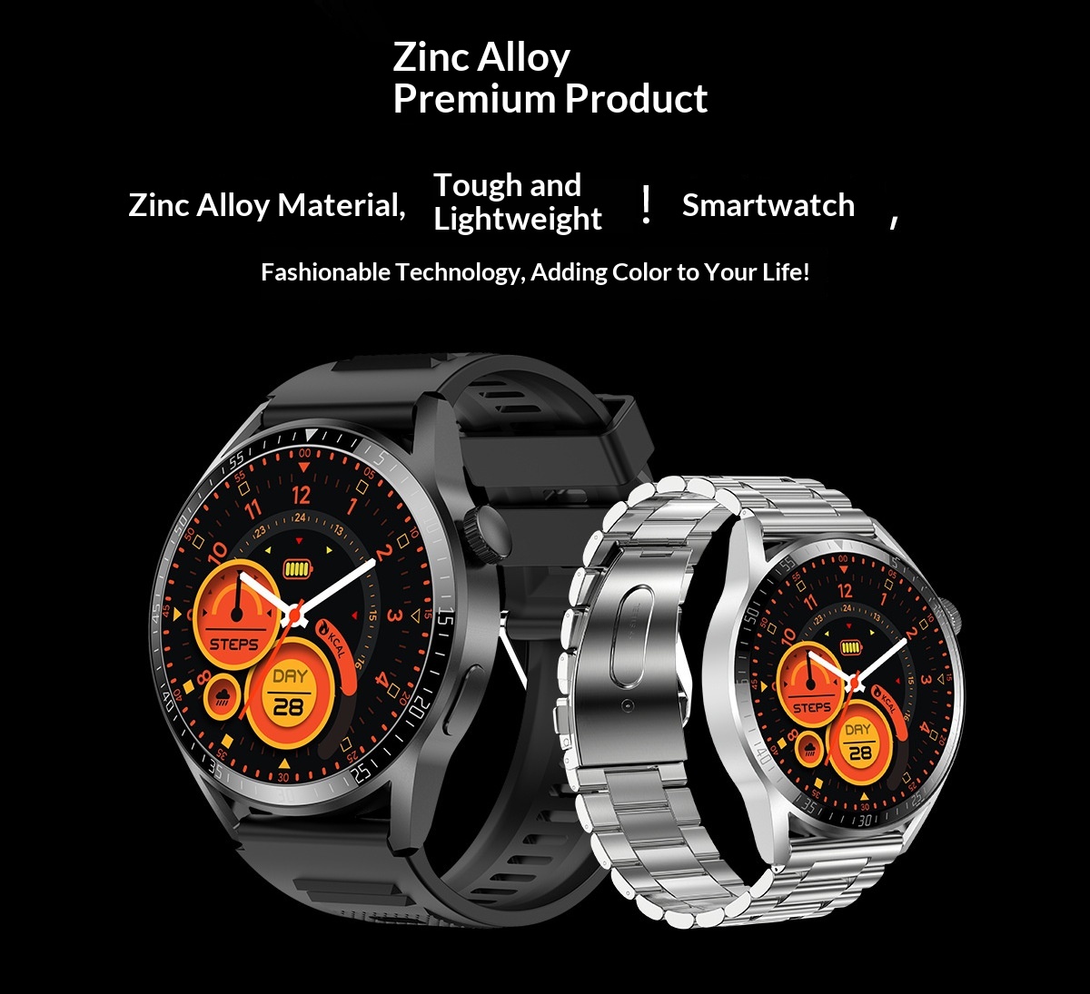 Color: Black silicone strap, silver silicone strap, optional leather strap and steel strap