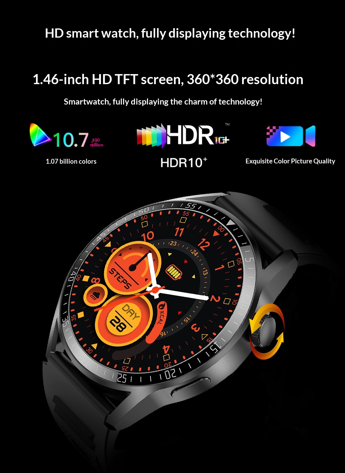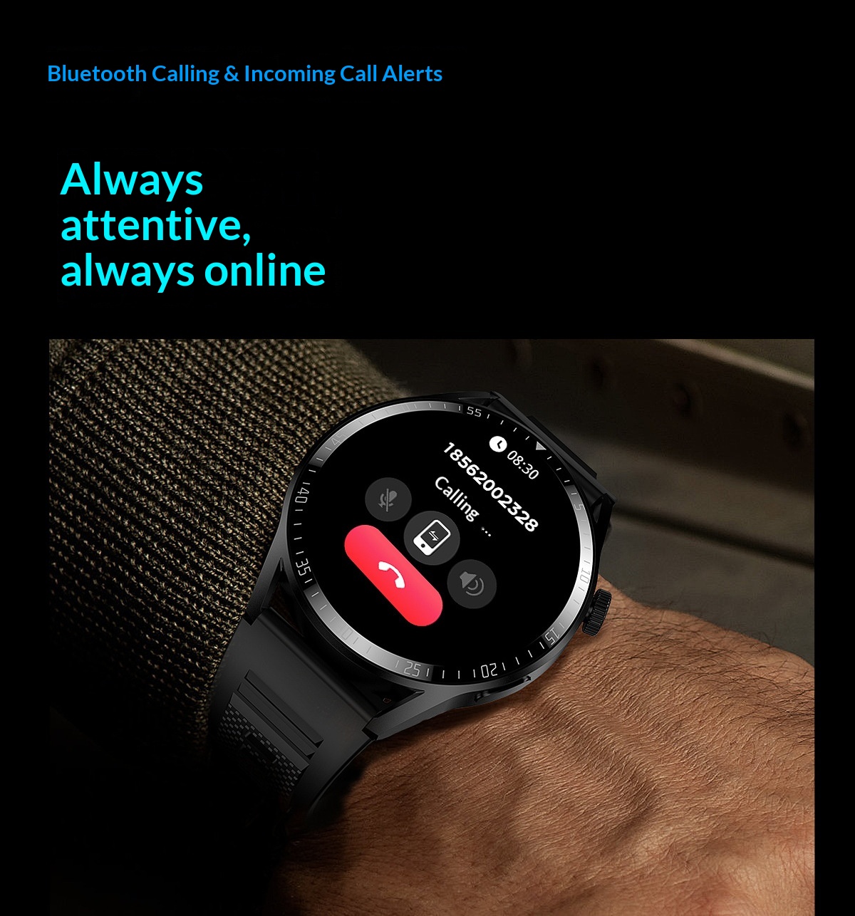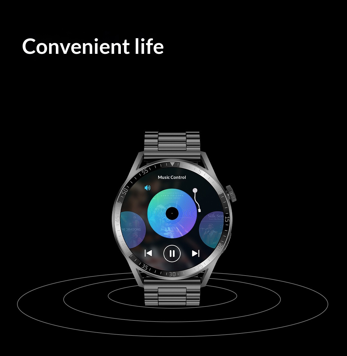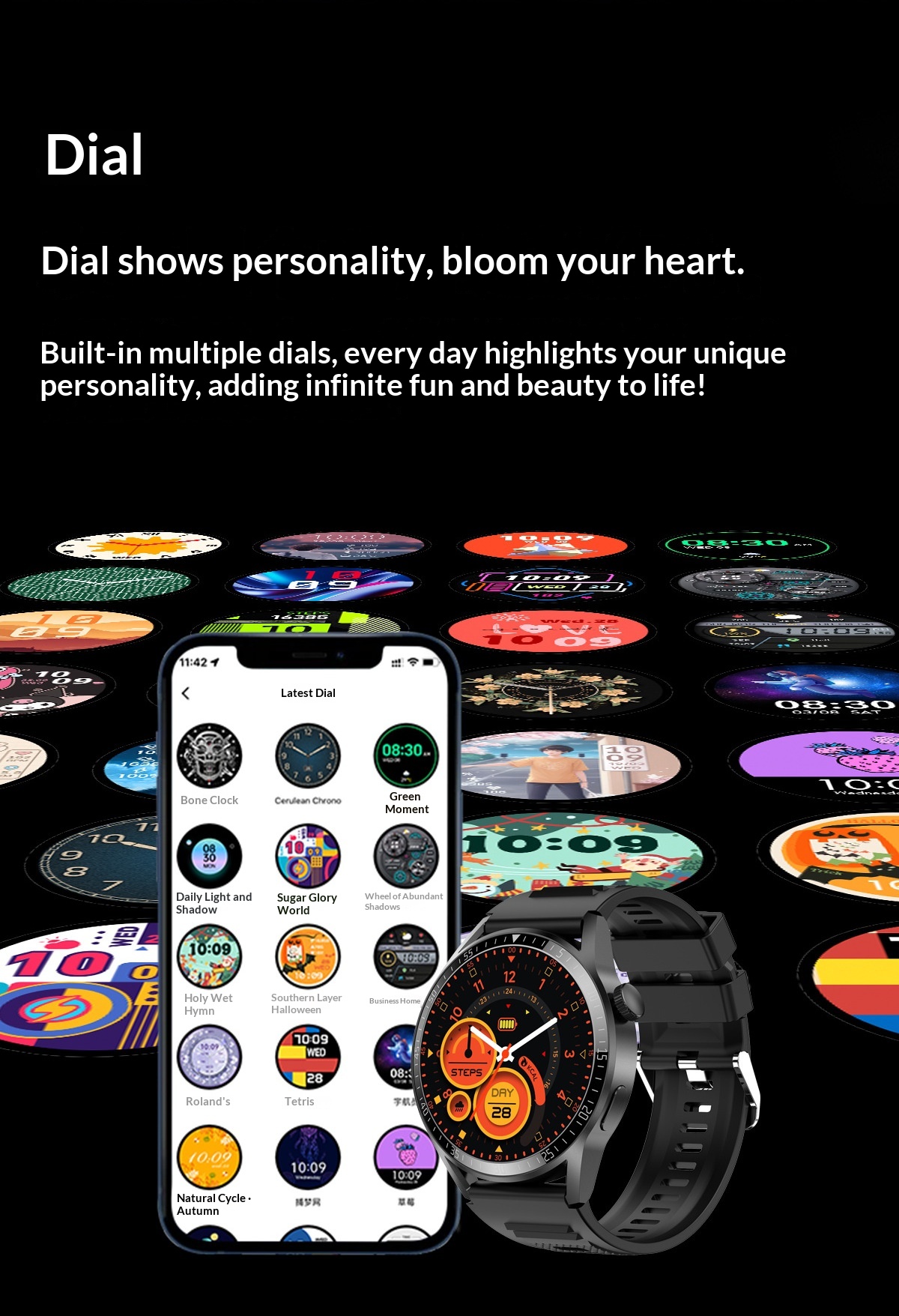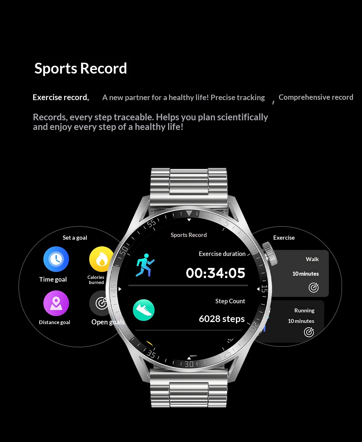 Color: Black silicone strap, silver silicone strap, optional leather strap and steel strap