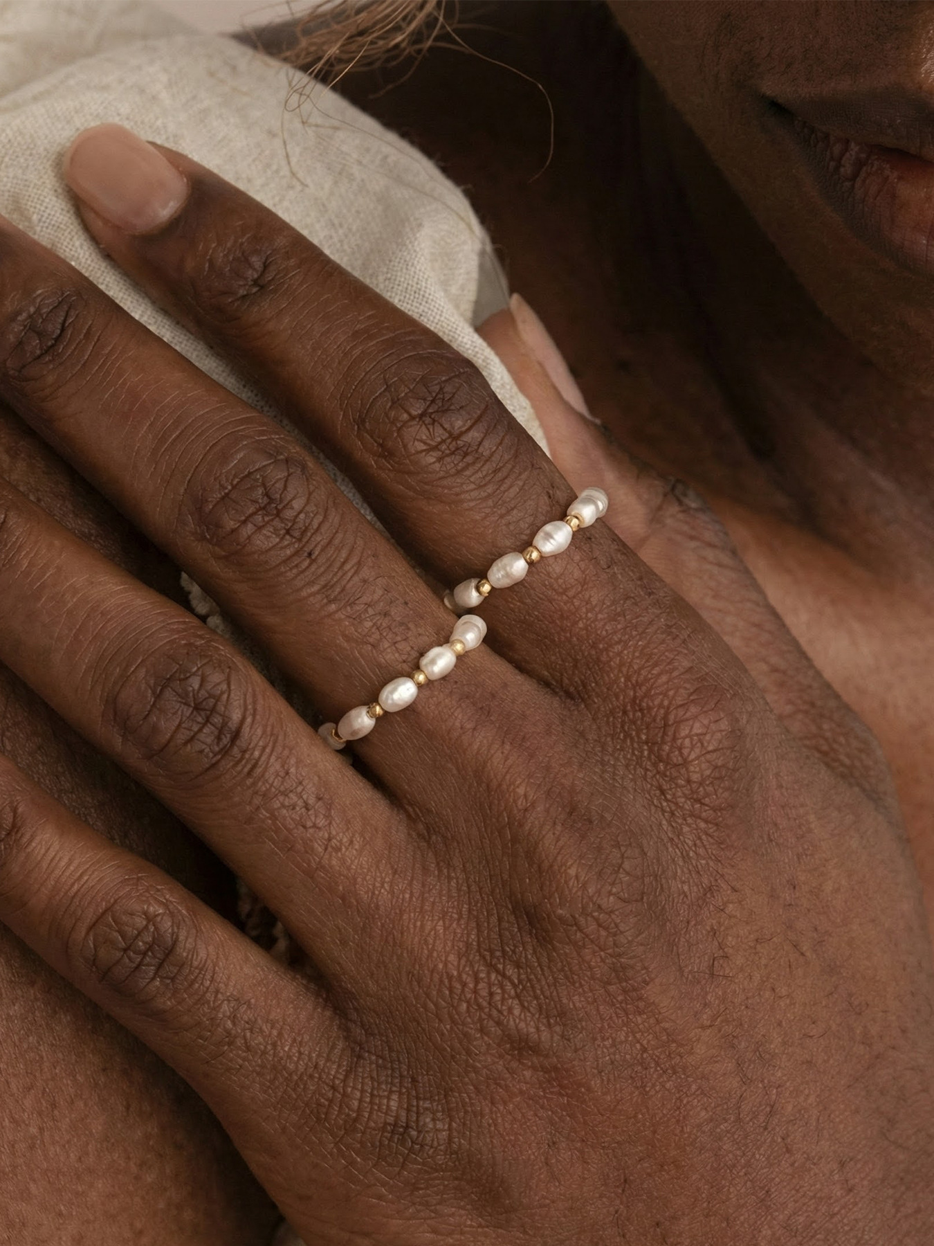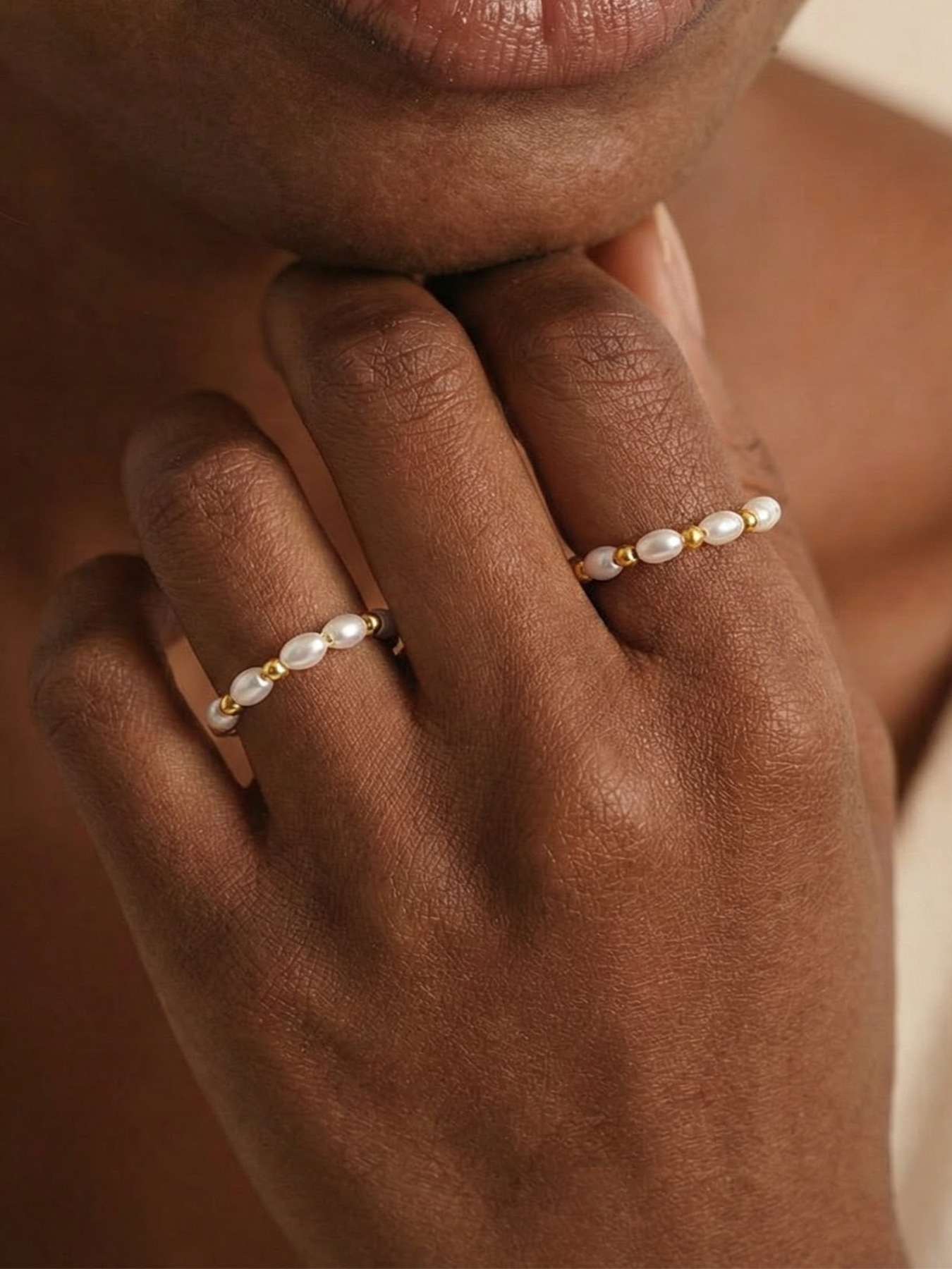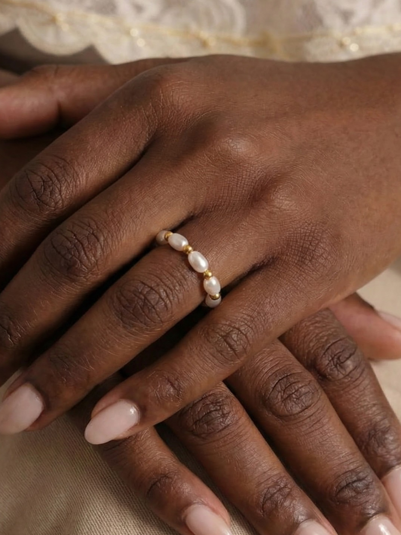 Womens Niche Design Ring With Imitation Pearl And Bead Accents